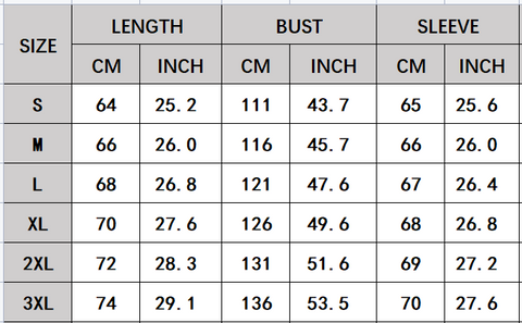 - Size: S-3XL(cm/in)