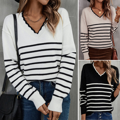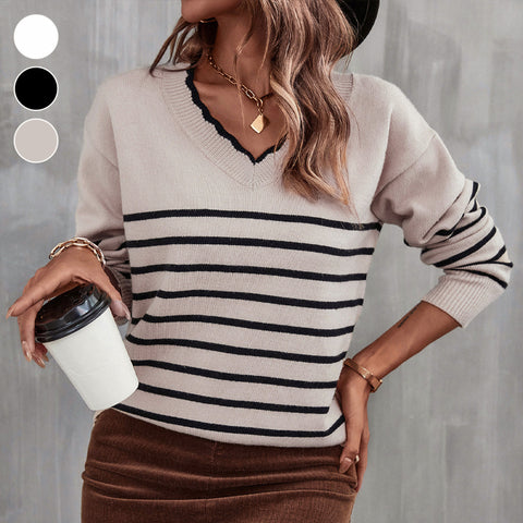 V-Neck Striped Knit Sweater