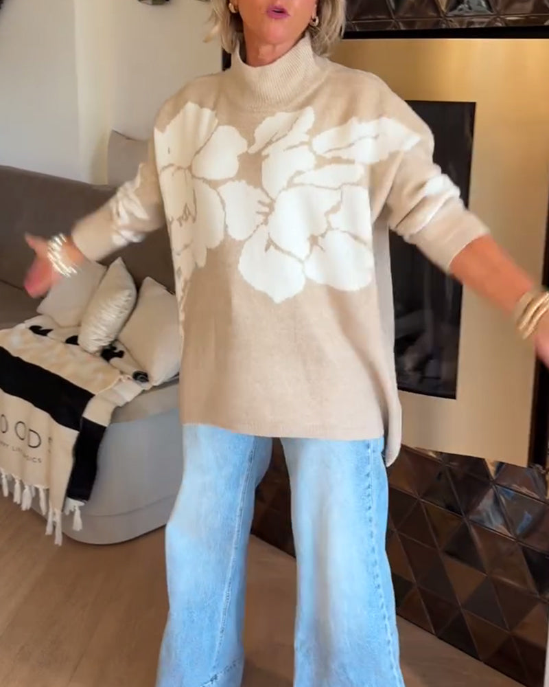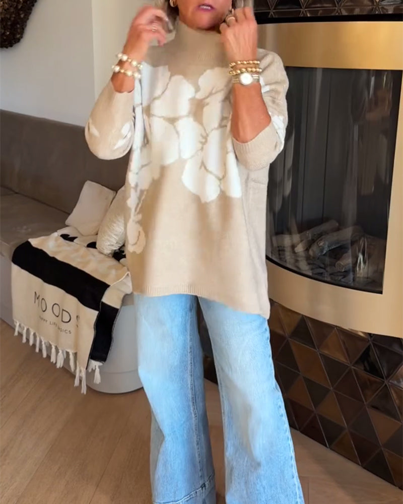 High Neck Floral Print Jumper