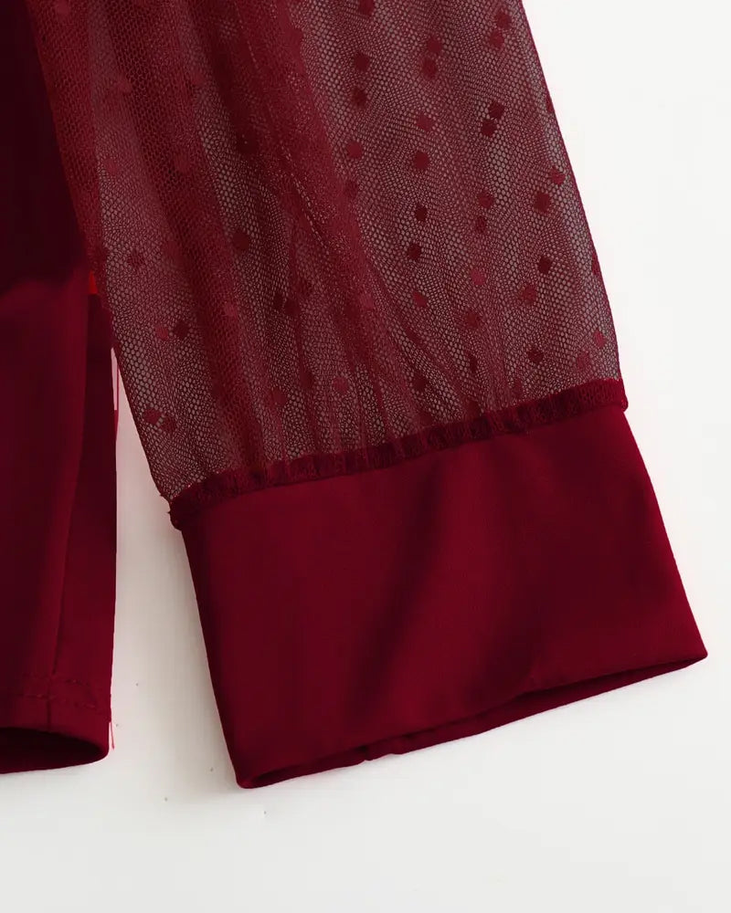 Mesh Lapel Slim-Fit Blouse