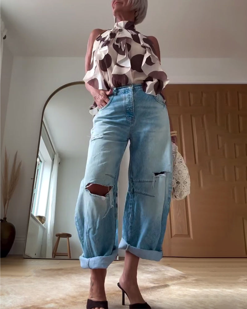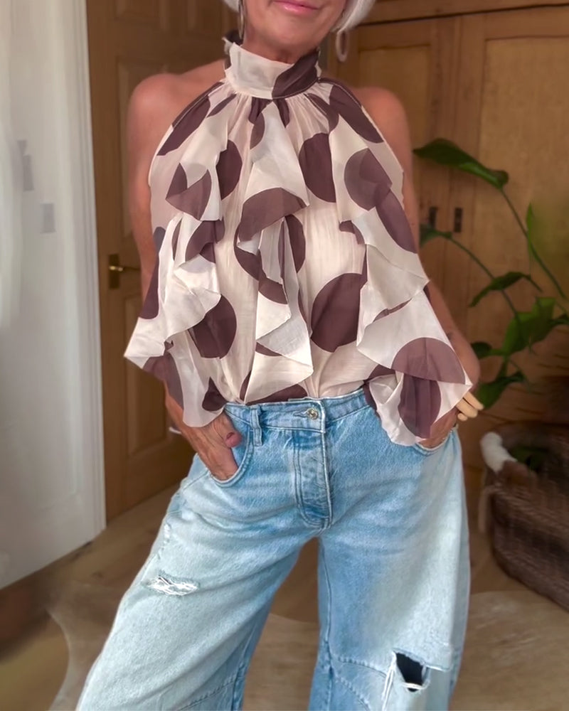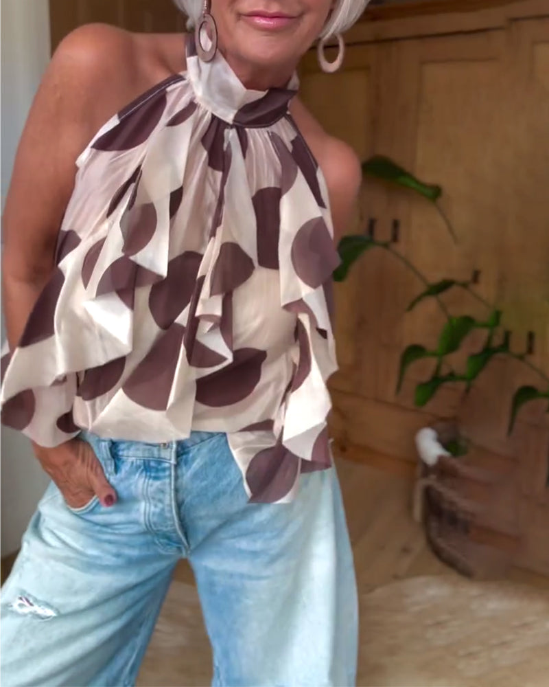 Sleeveless Ruffled Halter Neck Blouse