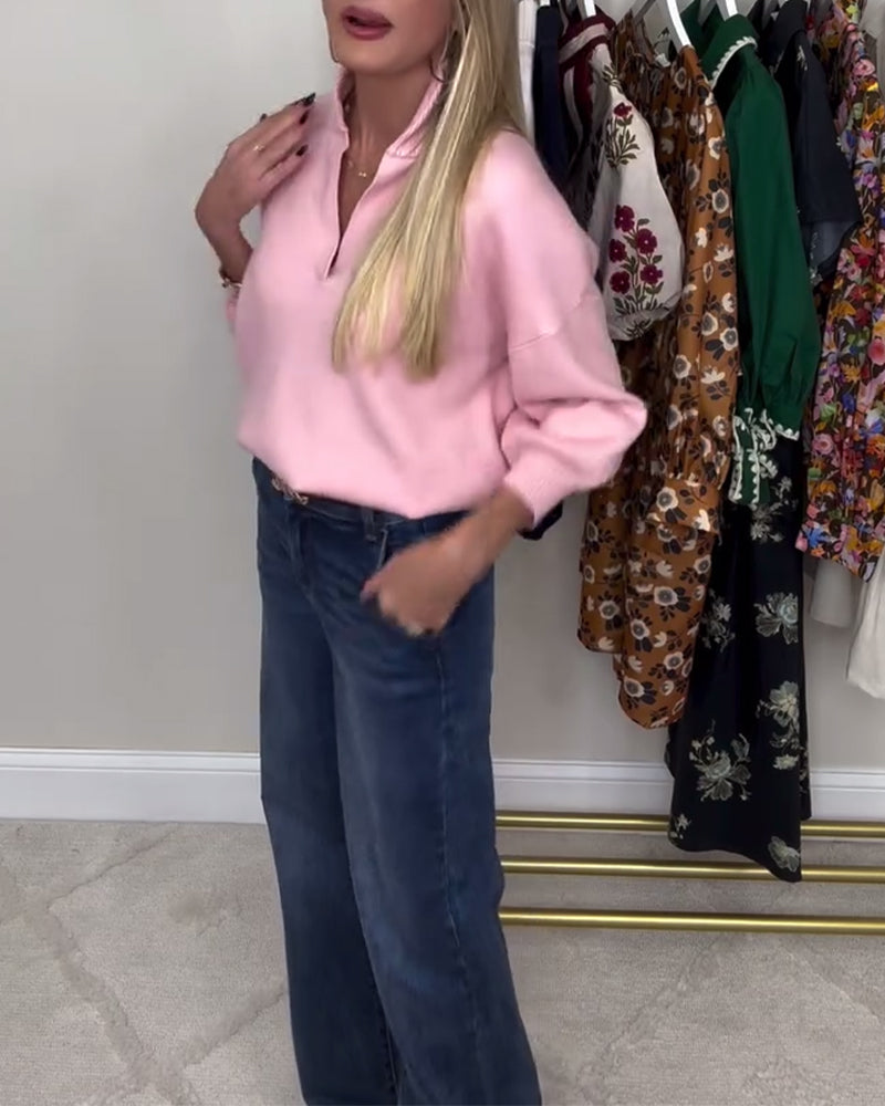 V-Neck Fashionable Long-Sleeved Pullover
